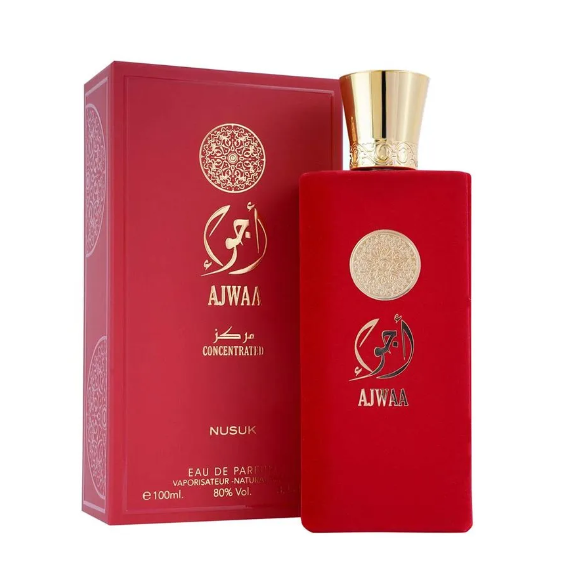 Ajwaa Murakaz Concentrated Red de Nusuk é um perfume Floral Frutado Feminino. Ajwaa Murakaz Concentrated Red foi lançada em 2021. As notas de topo são: Groselha Preta, Pera e Ruibarbo. As notas de coração são: Tuberosa, Rosa e Flor de Laranjeira. As notas de fundo são: Sândalo, Avelã e Notas Amadeiradas.