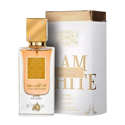 O Ana Abiyedh Poudrée – I Am White Eau de Parfum 60ml da Lattafa é uma fragrância unissex que combina elegância e suavidade, destacando-se por seu caráter atalcado e envolvente.