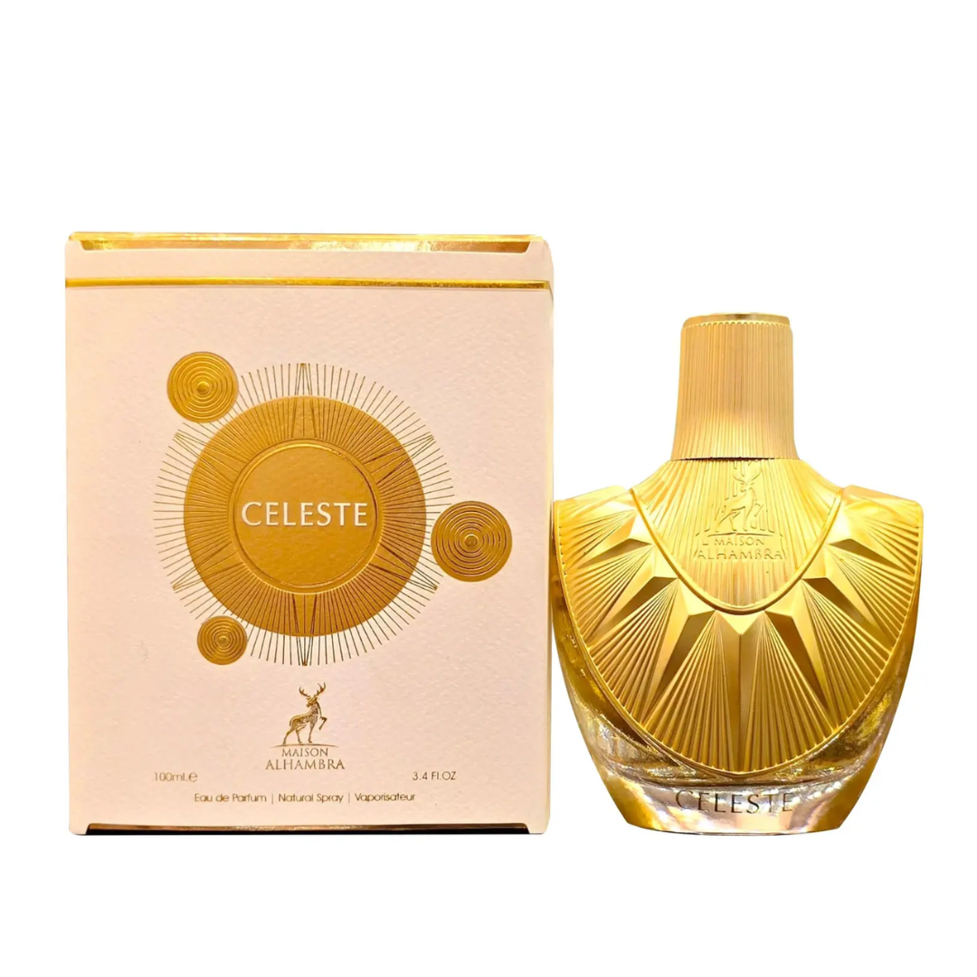 Céleste de Maison Alhambra é um perfume Compartilhável. Céleste foi lançada em 2022. As notas de topo são: Limão e Bergamota. As notas de coração são: Jasmim, Lírio-do-Vale e Rosa. As notas de fundo são: Ylang Ylang, Sândalo, Almíscar e Musgo.