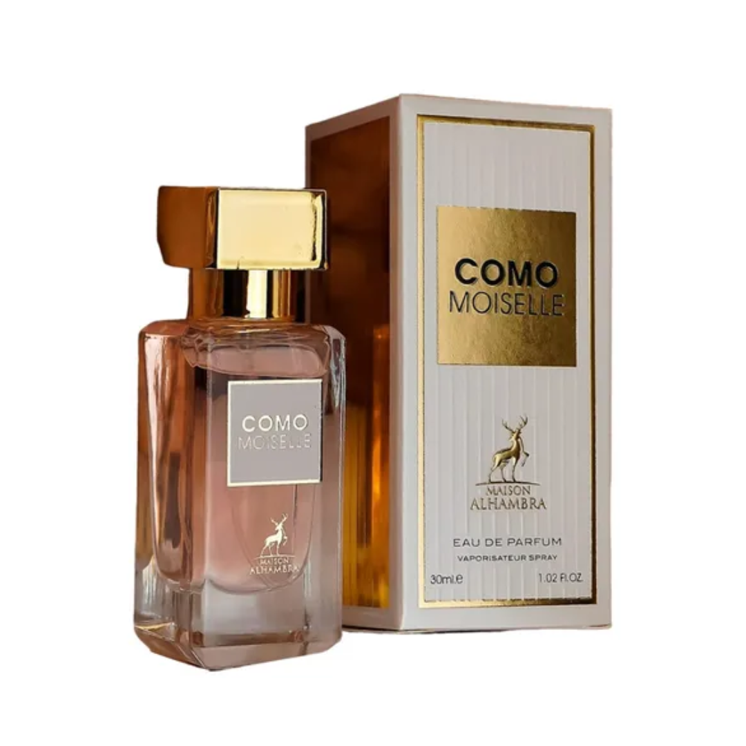 Como Moiselle de Maison Alhambra é um perfume Oriental Floral Feminino. Como Moiselle foi lançada em 2022. As notas de topo são: Laranja, Bergamota, Mandarina e Flor de Laranjeira. As notas de coração são: Rosa Turca, Jasmim, Mimosa e Ylang Ylang. As notas de fundo são: Patchouli, Fava Tonka, Vetiver, Almíscar Branco, Baunilha e Opoponax.