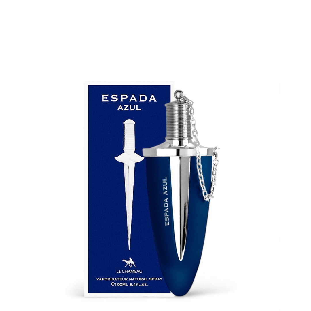 Espada Azul de Le Chameau é um perfume Amadeirado Especiado Masculino. Espada Azul foi lançada em 2023. As notas de topo são: Pimenta Rosa, Toranja, Hortelã Picante, Laranja, Noz-moscada, Cítricos e Limão. As notas de coração são: Cedro, Jasmim, Vetiver e Gengibre. As notas de fundo são: Olíbano, Sândalo, Patchouli e Ládano.