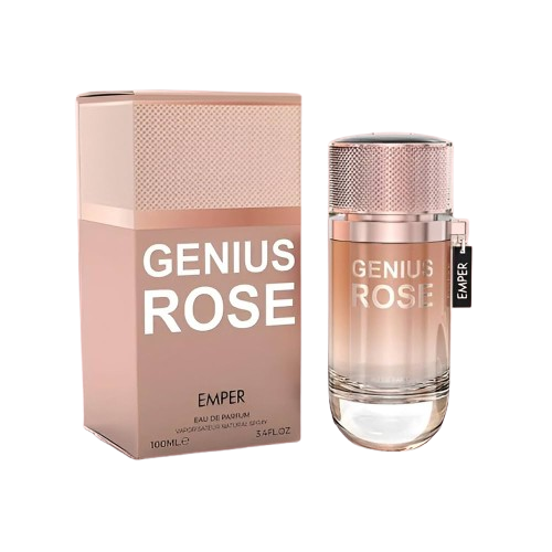 O Genius Rose da Emper é uma fragrância feminina lançada em 2024, que combina notas florais, frutadas e amadeiradas para criar uma experiência olfativa sofisticada e envolvente. Com notas de topo de champanhe rosé e pimenta rosa, seguidas por um coração de flor de pêssego e rosa, e finalizando com uma base de almíscar branco e notas amadeiradas, este perfume oferece uma composição equilibrada e marcante.