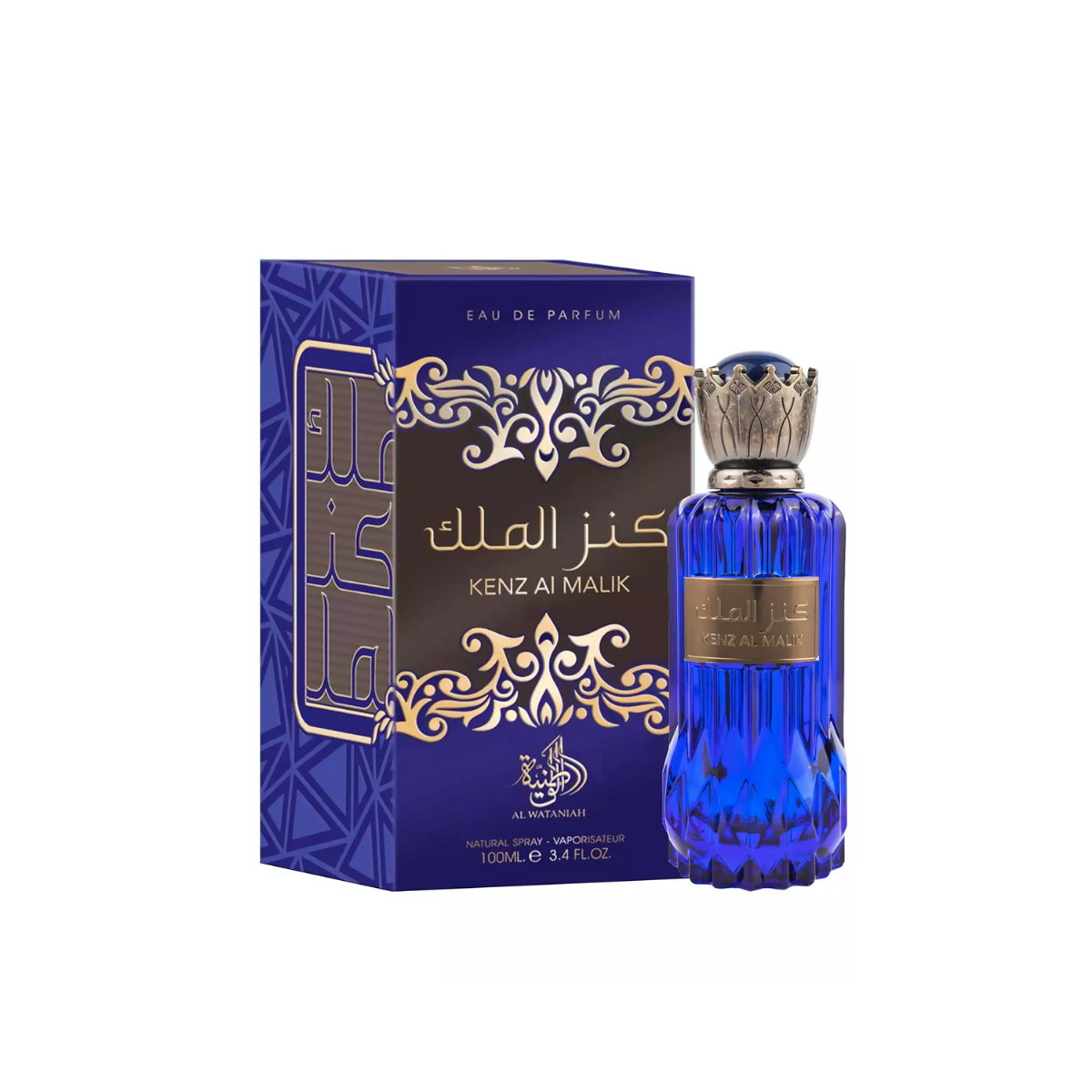 Kenz Al Malik de Al Wataniah é um perfume Amadeirado Especiado Masculino. Esta é uma nova fragrância. Kenz Al Malik foi lançada em 2022. As notas de topo são: Toranja, Pimenta Rosa, Bergamota, Vetiver, Limão e Notas Oceânicas. As notas de coração são: Toranja, Gengibre, Cedro, Hortelã, Noz-moscada, Jasmim e Ládano. As notas de fundo são: Gengibre, Madeira de Âmbar, Incenso e Sândalo.
