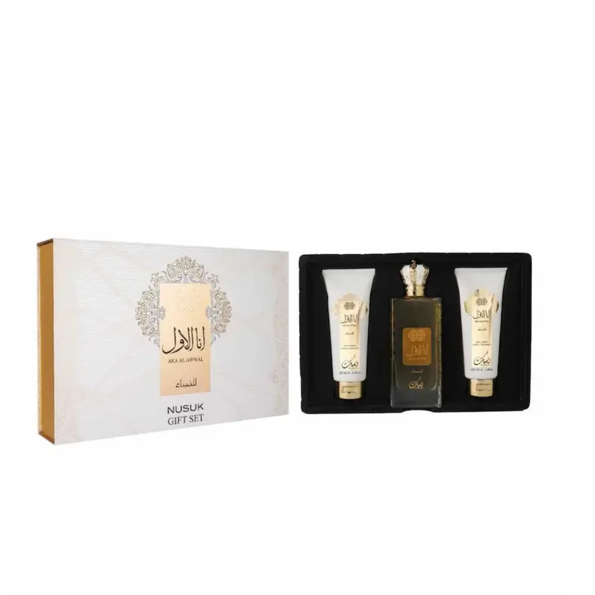 Kit Perfume Ana Al Awwal Golden Nusuk Feminino é a combinação perfeita de perfumação, cuidado e sofisticação. Composto por três itens essenciais — Eau de Parfum 100ml, Shower Gel 100ml e Body Lotion 100ml — o kit oferece uma experiência completa que transforma a rotina em um verdadeiro ritual de beleza. É ideal para mulheres que desejam destacar sua presença com delicadeza e luxo oriental. O Perfume Ana Al Awwal Golden é uma fragrância feminina marcante, que mistura elegância e sensualidade em cada borrifada. As notas orientais e florais se combinam harmoniosamente, resultando em um aroma envolvente, quente e levemente adocicado. Sofisticado e duradouro, é perfeito para ocasiões especiais ou para quem gosta de estar sempre perfumada com classe. O Shower Gel limpa suavemente a pele, deixando uma fragrância leve e preparando o corpo para receber a hidratação. Já a Body Lotion nutre profundamente, deixando a pele macia, aveludada e com o mesmo perfume encantador do Eau de Parfum. Juntos, os três produtos garantem uma perfumação duradoura e uniforme por todo o corpo. Ana Al Awwal Golden Kit Feminino é a escolha ideal para presentear ou se presentear com charme e elegância. Uma fusão perfeita entre cuidado e sofisticação, pensada para mulheres que apreciam fragrâncias marcantes e uma rotina de beleza completa.