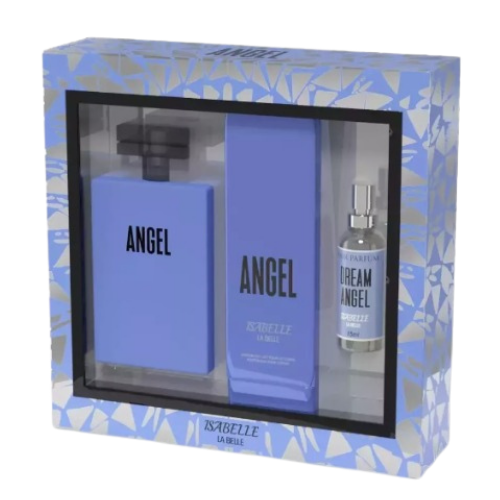 O Kit Angel Isabelle La Belle oferece uma experiência completa de cuidados com a pele e fragrância.Inclui o icônico Perfume Angel de 100 ml, o Creme Hidratante Corporal Angel de 200 ml.