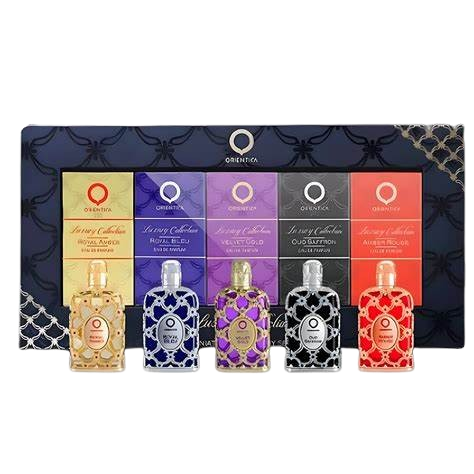 O Kit Luxury Collection Miniatura da Orientica é um conjunto refinado de perfumes árabes que oferece cinco fragrâncias Eau de Parfum em frascos de 7,5 ml cada. Ideal para quem deseja explorar diferentes aromas sofisticados ou presentear com elegância, o kit proporciona uma experiência olfativa diversificada e de alta qualidade.