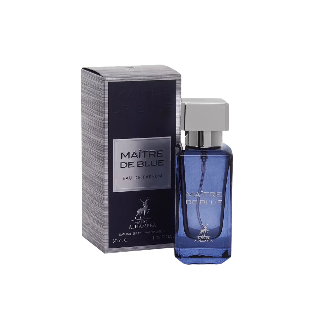 Maître de Blue de Maison Alhambra é um perfume Oriental Amadeirado Masculino. Maître de Blue foi lançada em 2022. As notas de topo são: Toranja, Bergamota, Aldeídos, Limão, Hortelã e Pimenta Rosa. As notas de coração são: Gengibre, Jasmim, Melão e Noz-moscada. As notas de fundo são: Âmbar, Patchouli, Agarwood (Oud), Ládano, Incenso e Sândalo.