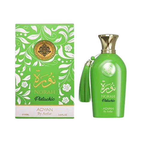 Norah Pistachio Eau de Parfum 100ml da Adyan é uma fragrância gourmand floral unissex que combina notas cremosas e doces com um toque exótico e sofisticado.