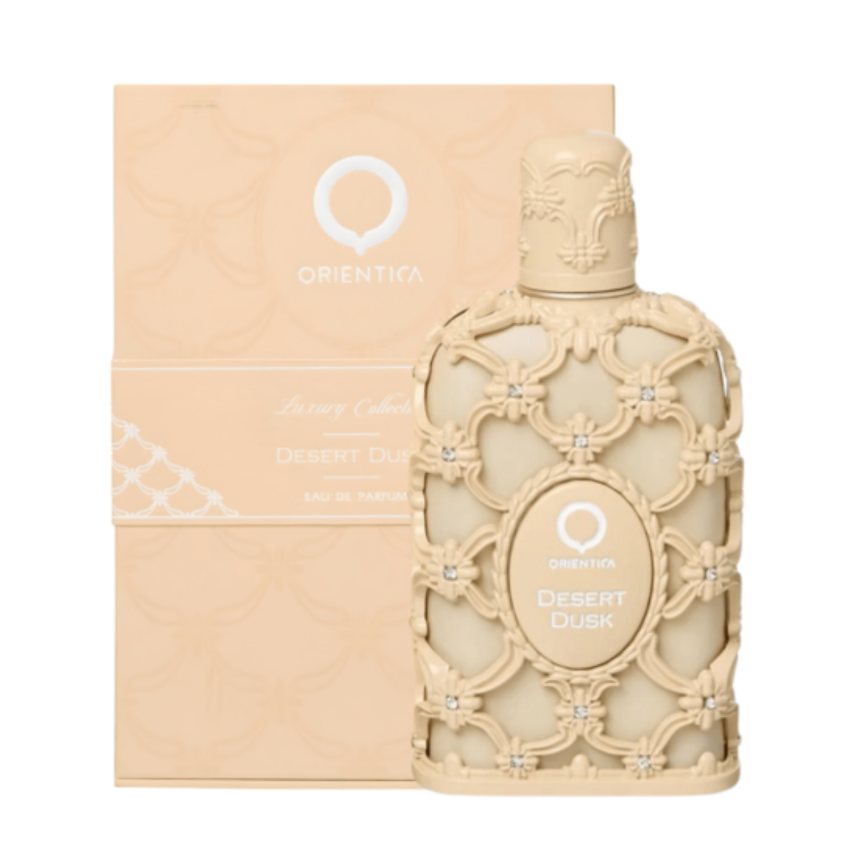 Desert Dusk de Orientica Premium é um perfume Feminino. Esta é uma nova fragrância. Desert Dusk foi lançada em 2025. As notas de topo são: Notas Atalcadas e Flores Brancas. As notas de coração são: Leite de Coco e Almíscar. As notas de fundo são: Musgo, Âmbar e Almíscar.