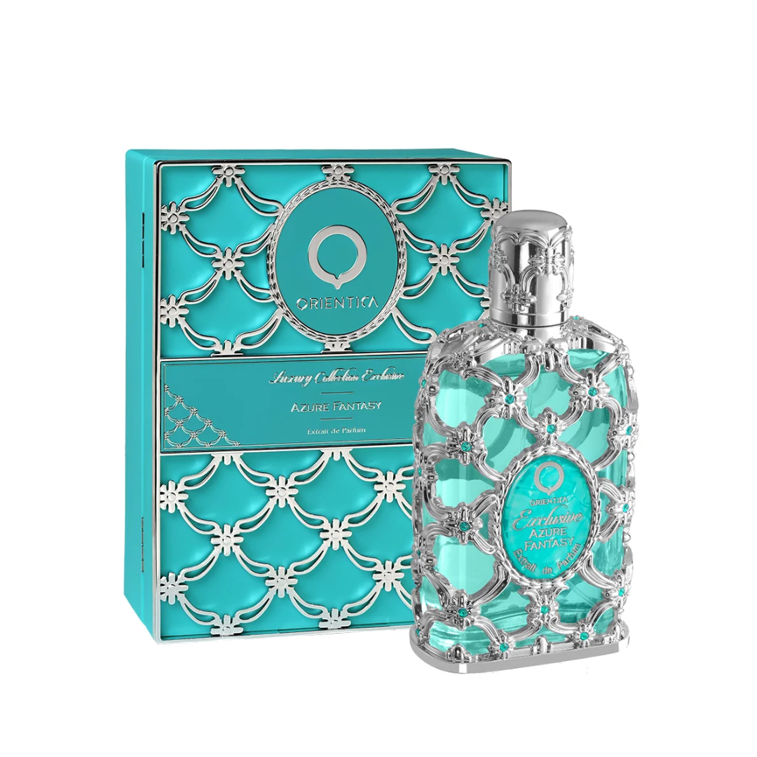 Exclusive Azure Fantasy de Orientica Premium é um perfume Compartilhável. Esta é uma nova fragrância. Exclusive Azure Fantasy foi lançada em 2024. As notas de topo são: Bergamota, Gengibre, Hortelã e Noz-moscada. As notas de coração são: Jasmim, Lírio-do-Vale e Gerânio. As notas de fundo são: Almíscar, Âmbar Cinzento e Madeira Guaiac.