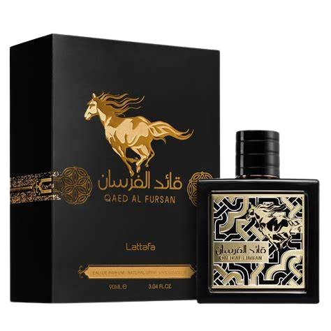 Qaed Al Fursan Eau de Parfum 90ml da Lattafa é uma fragrância unissex que combina notas frutadas e amadeiradas, criando um aroma sofisticado e envolvente. As notas de topo apresentam abacaxi e açafrão, proporcionando uma abertura vibrante e exótica. No coração, jasmim e bálsamo de abeto adicionam profundidade e elegância. A base é composta por oud, cedro e âmbar, conferindo um toque quente e duradouro à fragrância .