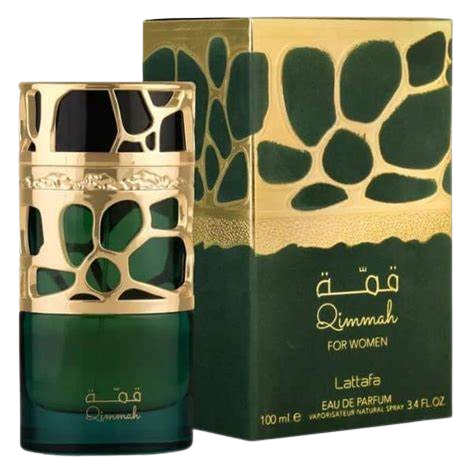 Qimmah for Women Eau de Parfum 100ml da Lattafa é uma fragrância oriental floral que combina sofisticação e feminilidade. Com notas de lavanda, açafrão e sálvia no topo, seguidas por mirra e âmbar no coração, e finalizando com cedro e oud na base, oferece um aroma equilibrado e envolvente.