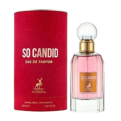 O So Candid Eau de Parfum 85ml da Maison Alhambra é uma fragrância floral feminina lançada em 2022, conhecida por sua combinação envolvente de notas florais e cremosas.