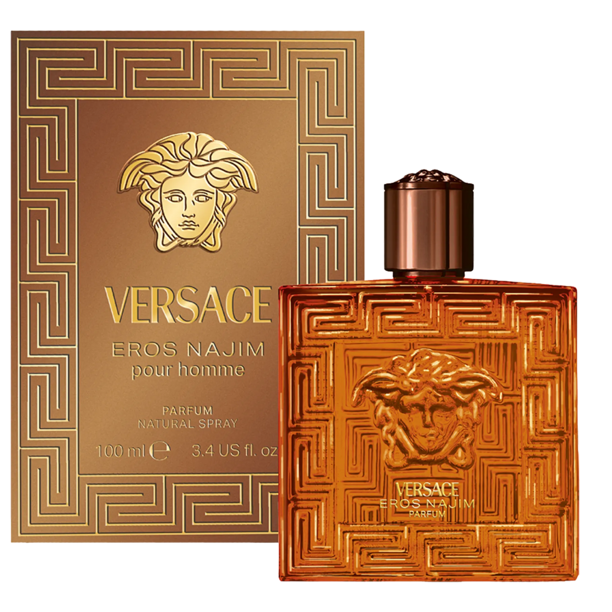 Eros Najim de Versace é um perfume Oriental Amadeirado Masculino. Esta é uma nova fragrância. Eros Najim foi lançada em 2024. As notas de topo são: Caramelo e Mandarina Italiana. As notas de coração são: Cardamomo e Agarwood (Oud). As notas de fundo são: Incenso, Patchouli e Vetiver.